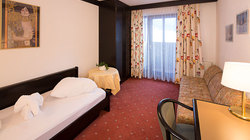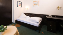 A comfortable single room with shower/WC, satellite TV, radio, telephone, about 15 m2.